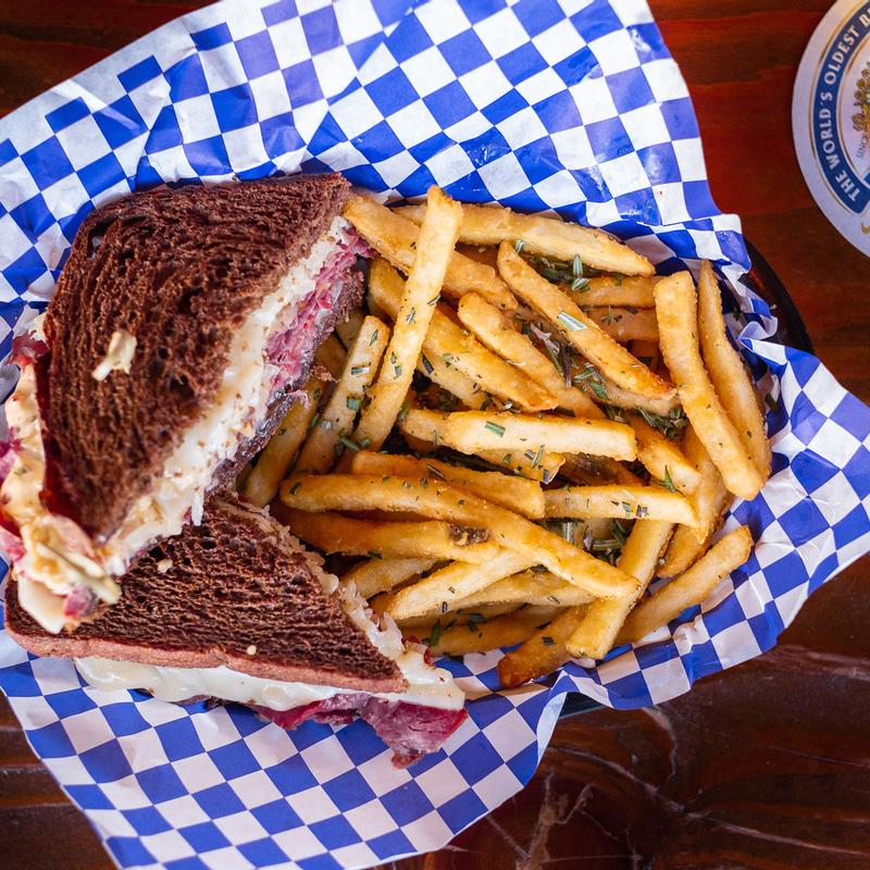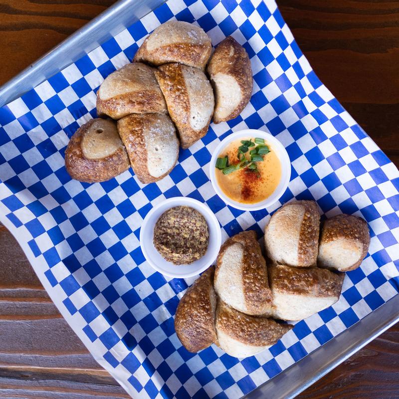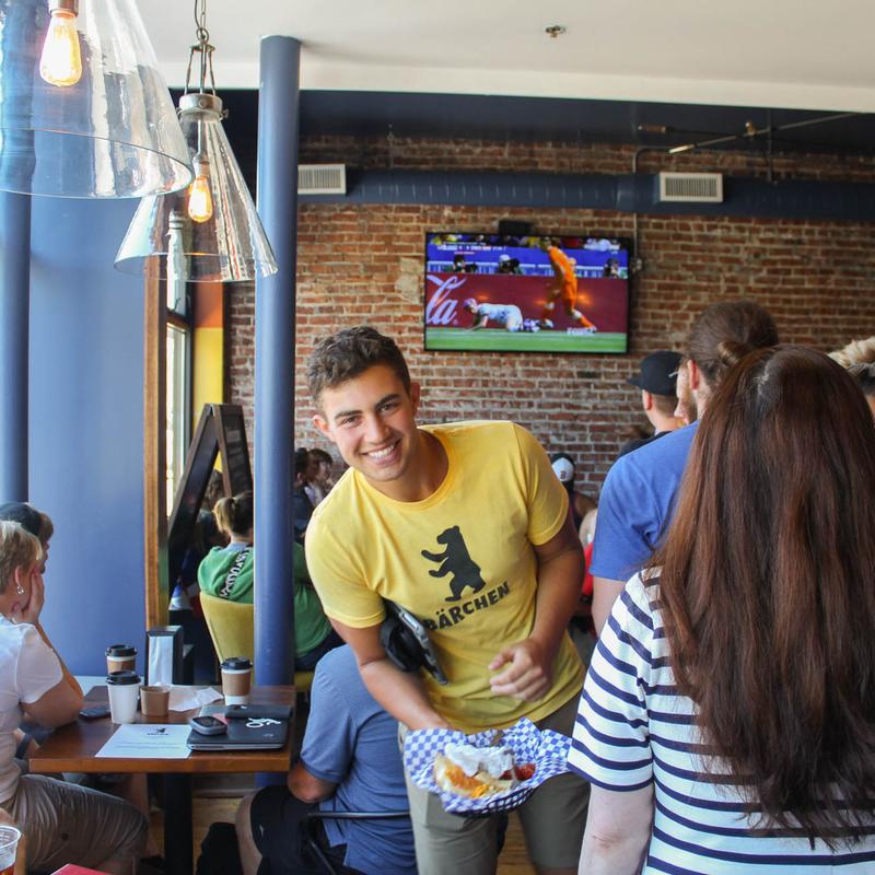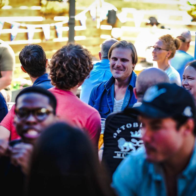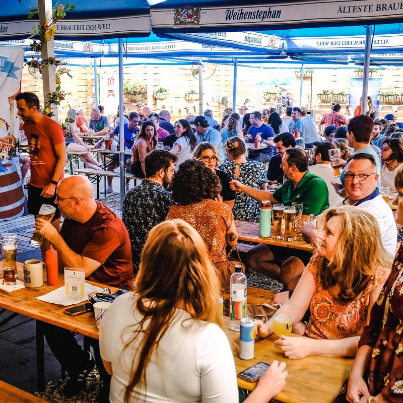 Our beer garden seats up to 150 under string lights and summer misters. Full bar, dog-friendly entrance, and menus that travel from pretzels to prime rib without losing tempo. Simple to book, easy to love.